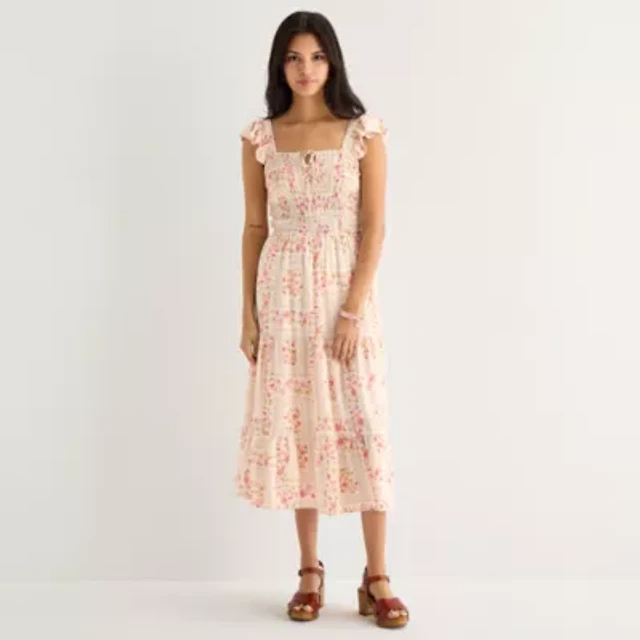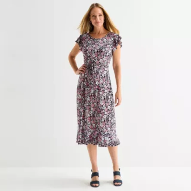MSK Womens Short Sleeve Floral Midi Fit + Flare Dress