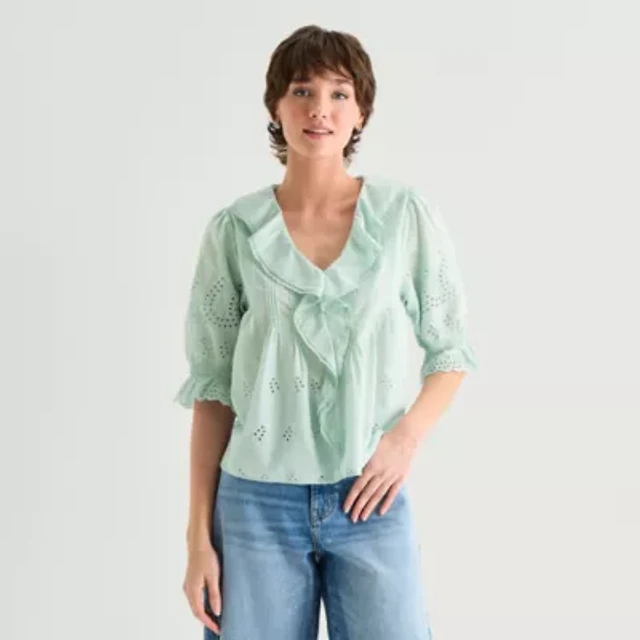 St. John's Bay Womens Long Sleeve Regular Fit Button-Down Shirt