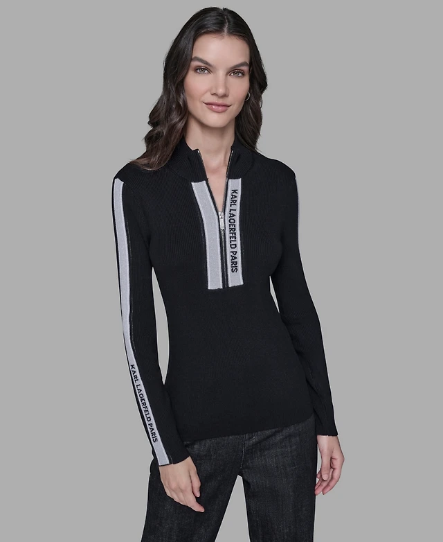 Karl Lagerfeld Paris Women's Logo Tape Zip-Up Sweater