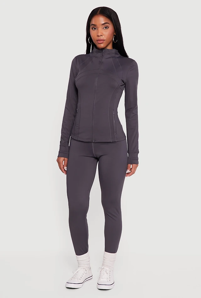 Plus Long Sleeve Mock Neck Yoga Jacket with Thumb Holes