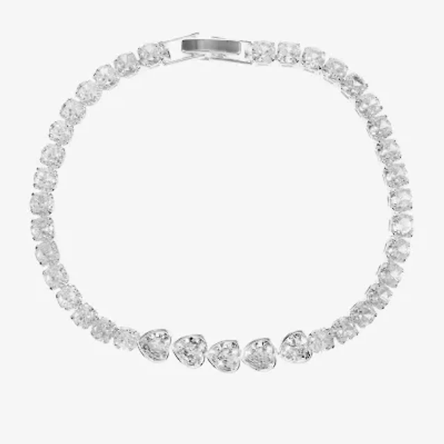 Sparkle Allure Womens Cubic Zirconia Pure Silver Over Brass Heart Round 7.5 Inch Tennis Bracelet