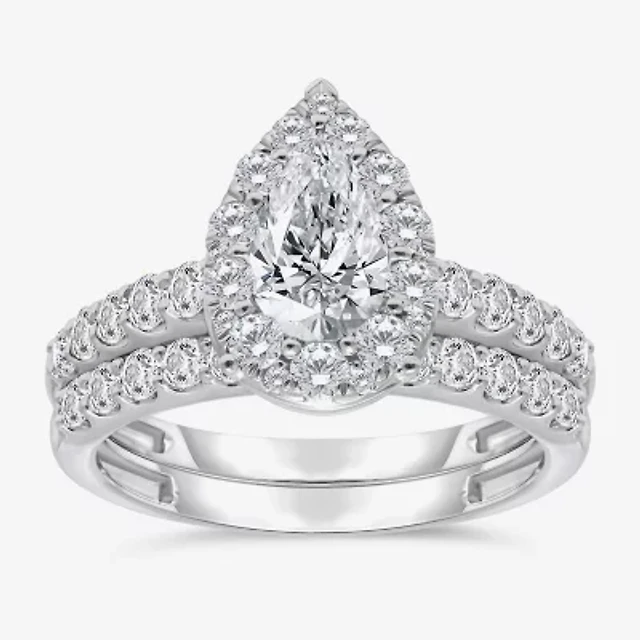 (H-I / Si2-I1) Womens 1 1/2 CT. T.W. Lab Grown White Diamond 10K Gold Round Side Stone Bridal Set