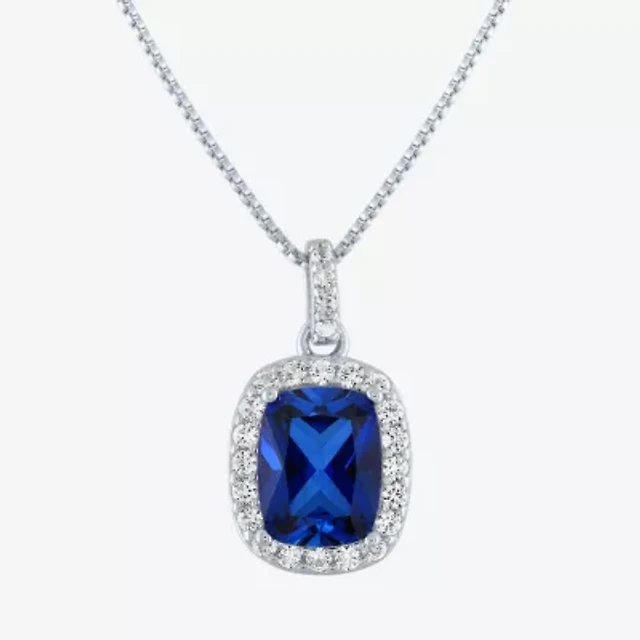 Womens Lab Created Gemstone Sterling Silver Halo Pendant Necklace