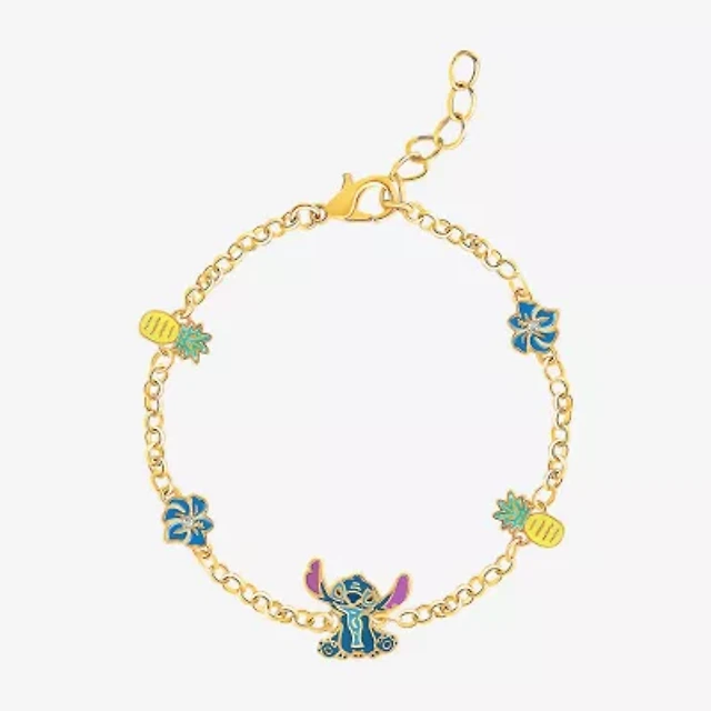Disney Classics Womens Crystal 14k Rose Gold Over Brass Pure Silver Over Brass Mickey Mouse Minnie Mouse Charm Bracelet