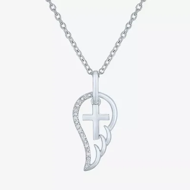 Womens 1/2 CT. T.W. Lab Grown White Diamond Sterling Silver Or 14K Gold Over Cross Pendant Necklace