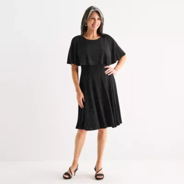 Danny & Nicole Womens Short Sleeve Embellished Fit + Flare Dress