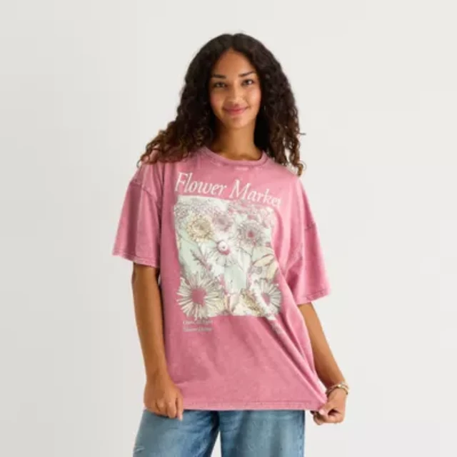 Arizona Womens Juniors Crew Neck Short Sleeve Graphic T-Shirt
