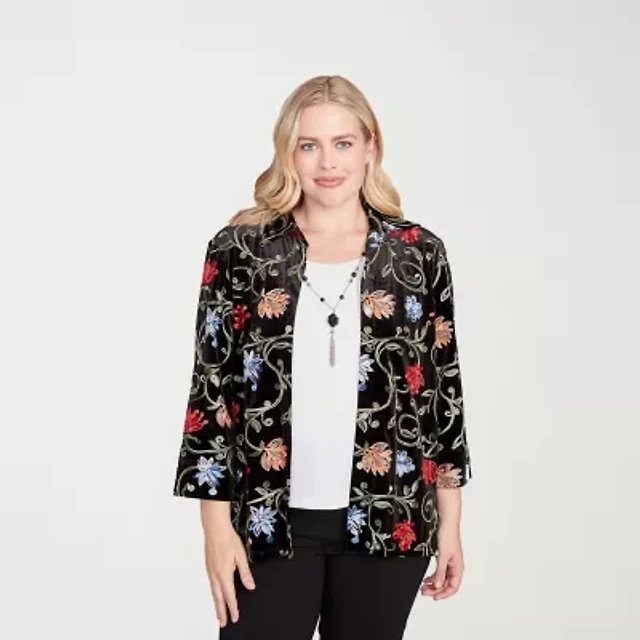 Alfred Dunner Jet Setter Womens Round Neck 3/4 Sleeve Geometric Layered Sweater