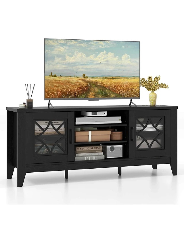 Gymax Farmhouse Tv Stand for TVs up to 70'' Media Center w/Glass Doors Cubbies & Drawer