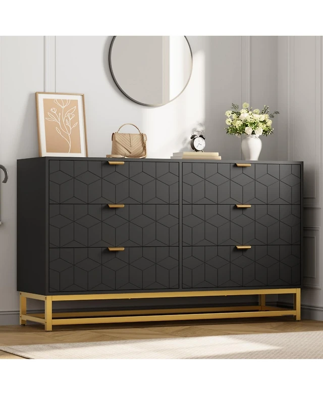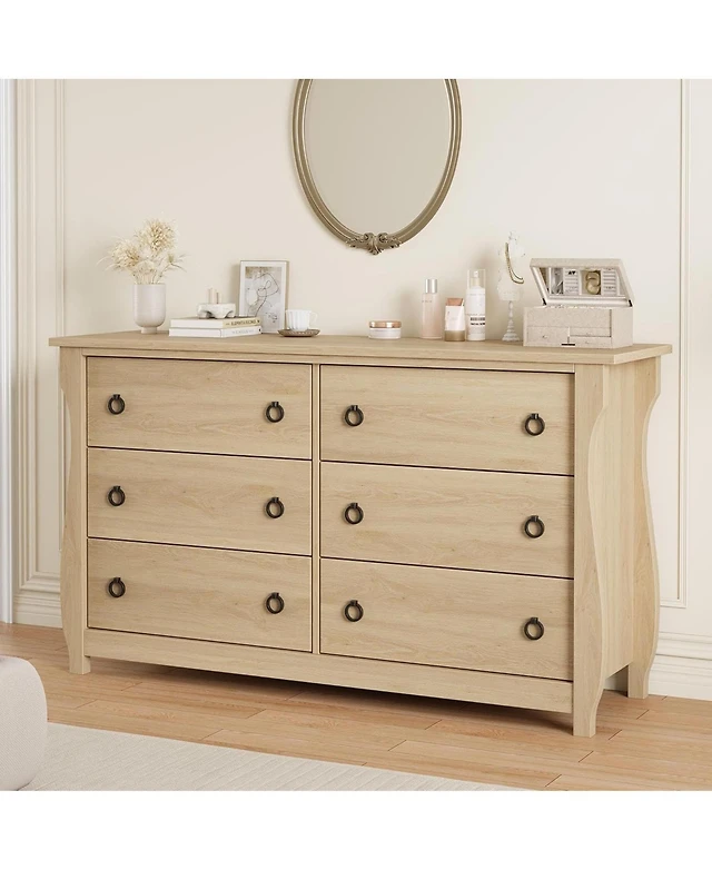 LuxenHome Mid-Century Modern Wave 6-Drawer 47.2-Inch Wide Dresser