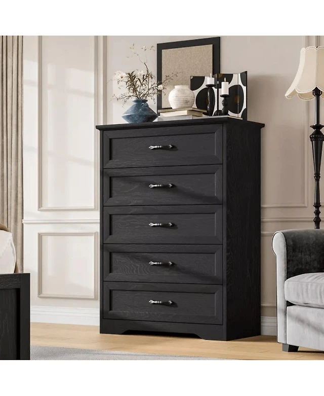 gaomon 5-Drawer Engineered Wood Waterproof Top, Anti-Tip, Lacquered Storage Chest Farmhouse Dresser