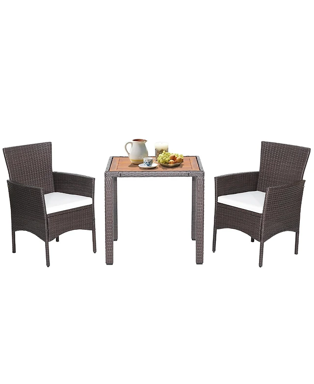 Costway 2pcs Pe Wicker Patio Bistro Chairs Acacia Wood Armrests
