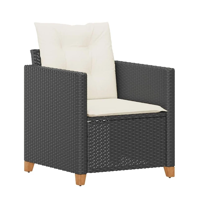 vidaXL Patio Chairs with Cream White Cushions 4 pcs Black Poly Rattan
