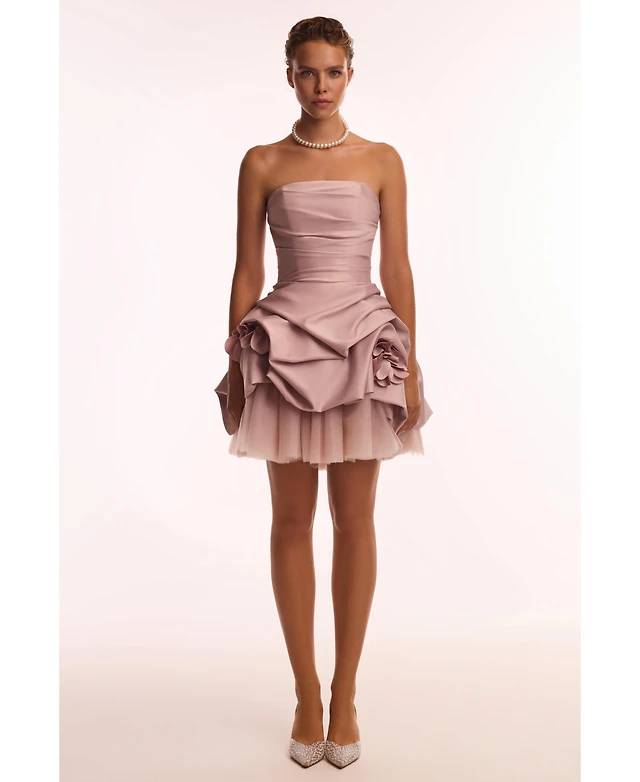 Miss Circle Women Zada Grey Pleated Breast Bubble Hem Mini Dress