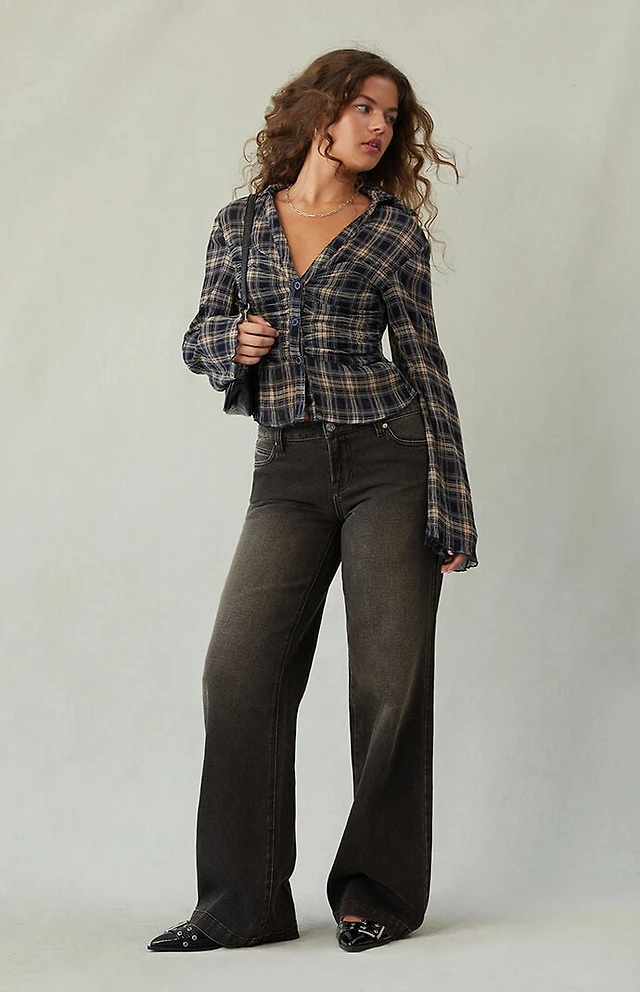 Pacsun Charlie Low Rise Baggy Bootcut Jeans Dark Blue