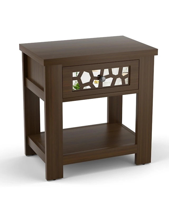 Wood Rectangular End Table with Drawer and Shelf for Living Room or Bedroom
