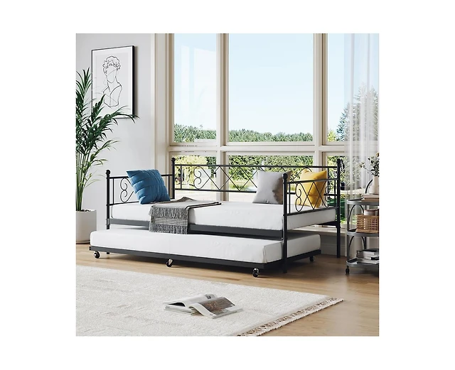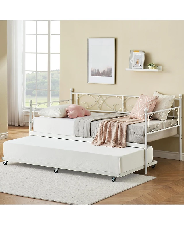 gaomon Twin Daybed with Trundle Metal Guest Sofa Bed Frame , Heavy Duty Slats