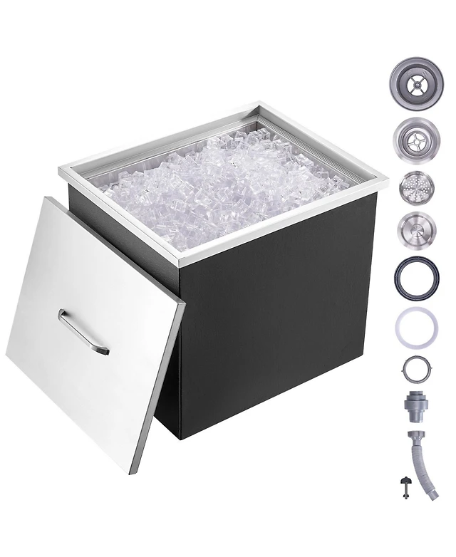 Mecale 24 x 18 x 13 Inch Drop-In Stainless Steel Ice Chest, 40.9 Qt with Sliding Lid