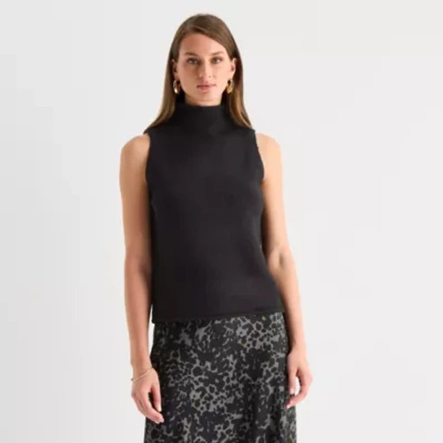 Worthington Womens Mock Neck Sleeveless Pullover Sweater