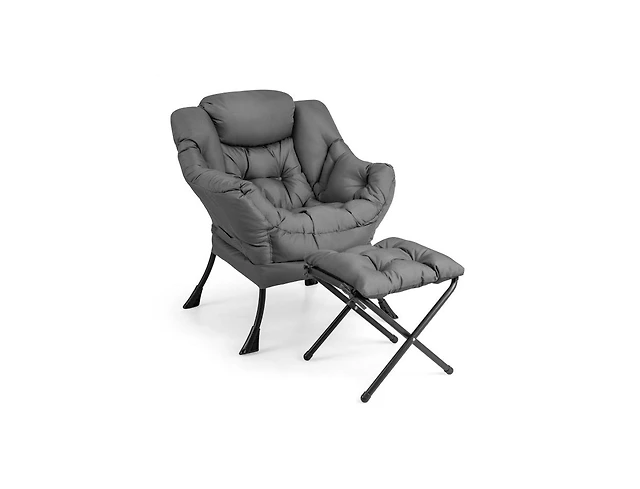 Glitzhome 2-Pc. Leatherette Mid-century Modern Hunter Accent Stool and Chair