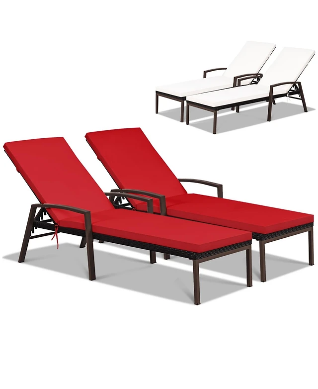 Gouun Patio Rattan Height Adjustable Lounge Chair with 2 Set of Cushion Cover