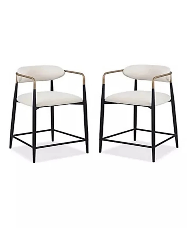 Set of 2 Counter Height Stools, 25" Upholstered Chairs with Gold Metal Legs, Curved Back & Armrests-Maison Boucle