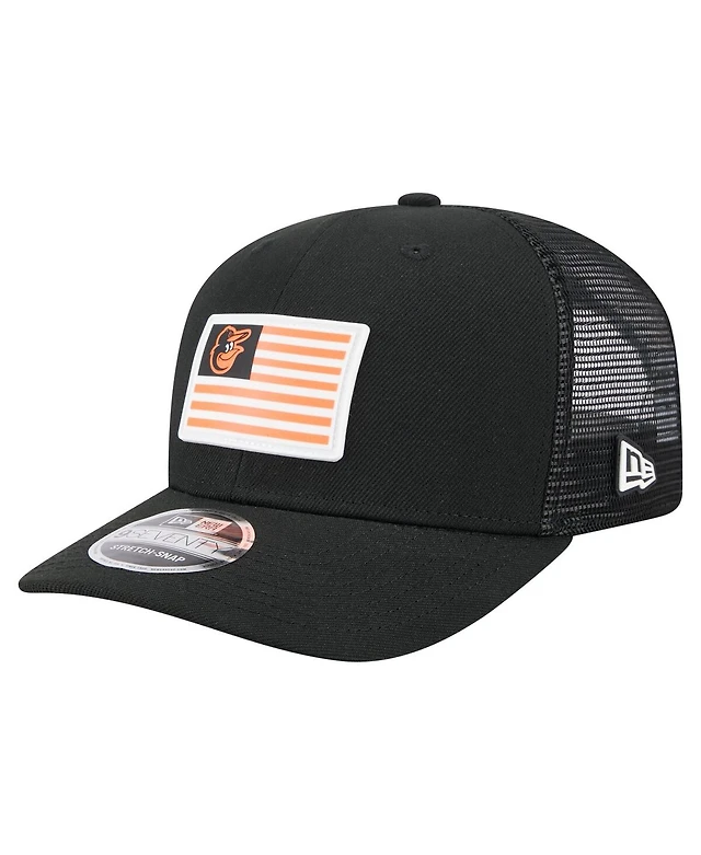 New Era Men's Black Baltimore Orioles Flag 9SEVENTY Stretch-Snap Hat
