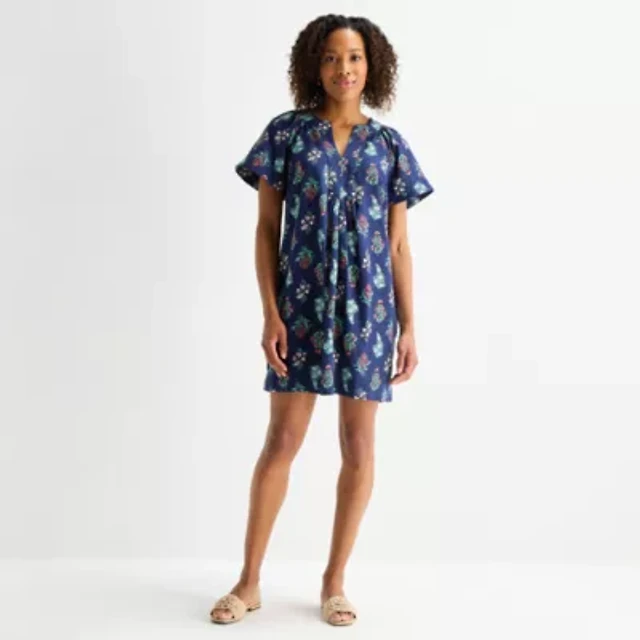 Sam And Jess Womens Plus Short Sleeve Floral Shift Dress
