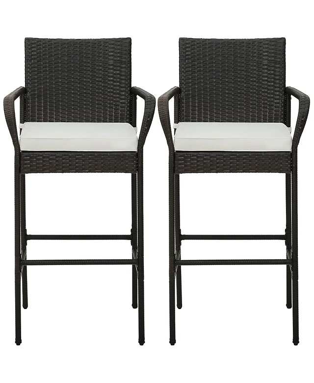 Gymax Patio Rattan Bar Stool Set of 4 Outdoor Pe Wicker Bar Chairs w/ Armrests & Sturdy Footrests