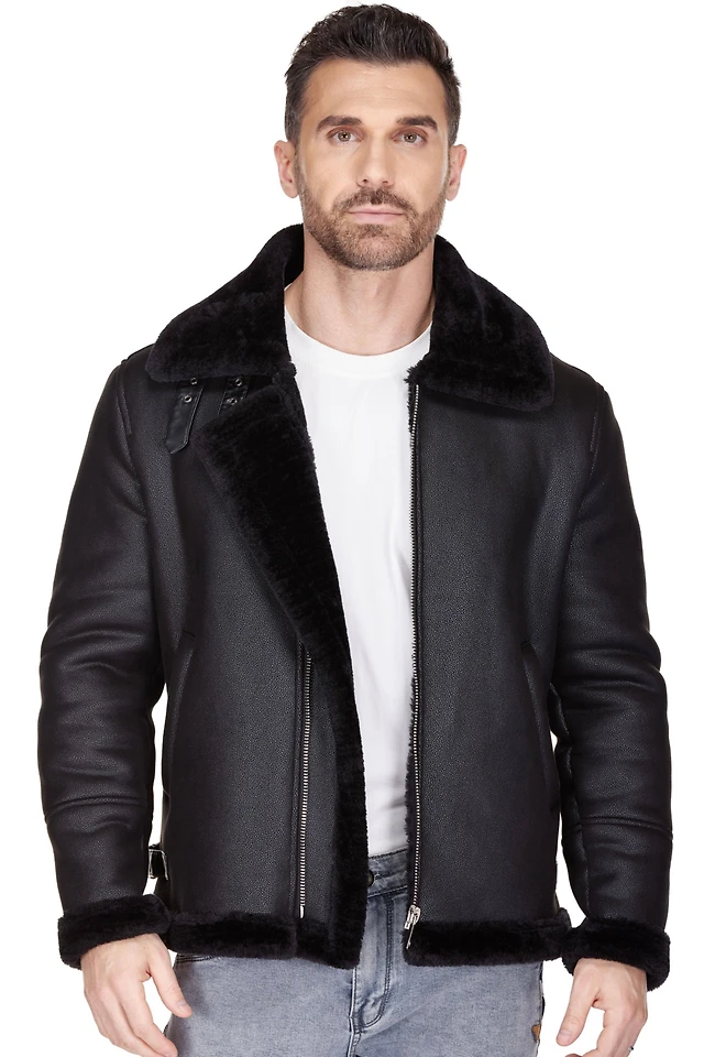 Furniq Uk Men's Genuine Leather Bomber Jacket, Natural Grain Black