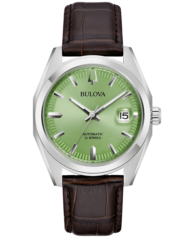 Bulova Men's Automatic Surveyor Brown Leather Strap Watch 39mm