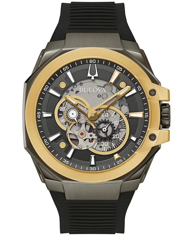 Bulova Men's Automatic Black Silicone Strap Watch 46mm 98A177