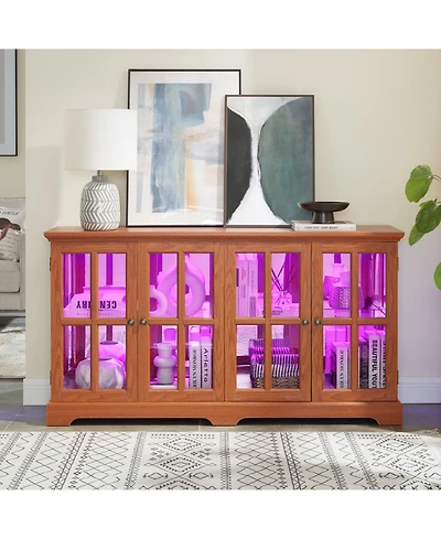Streamdale Furniture 54" Retro Buffet Cabinet - 4-Door Fluted Sideboard