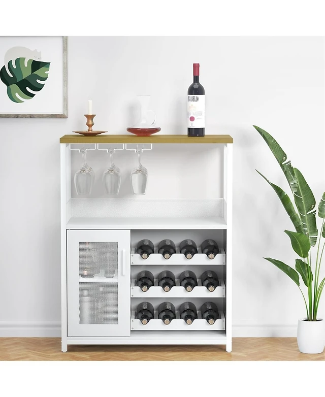 Costway Kitchen Buffet Storage Cabinet Sideboard w/Sliding Barn Door Wine Rack