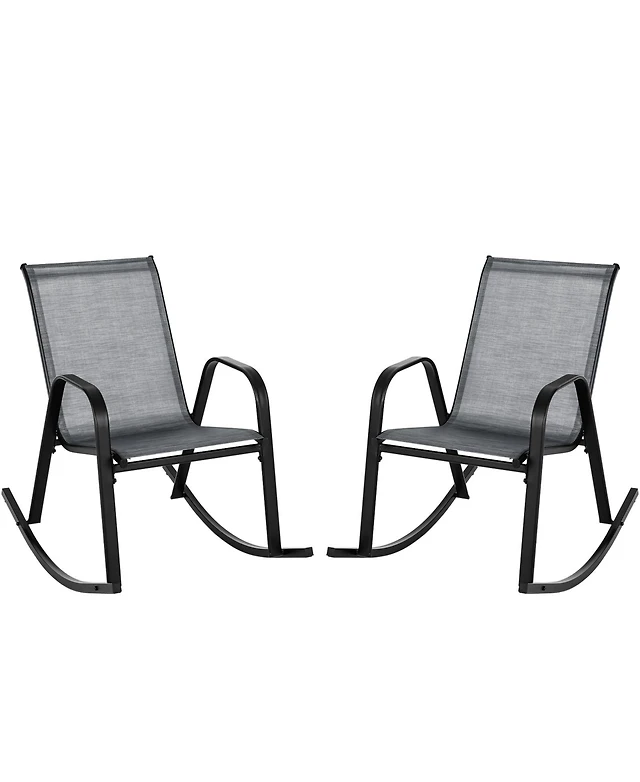 2 Pcs Outdoor Rocking Lounge Chair with Removable Headrest Breathable Backrest & Seat