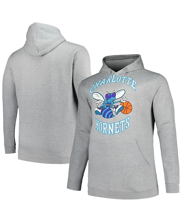 Men's Mitchell & Ness Heather Gray Distressed Charlotte Hornets Big and Tall Hardwood Classics Vintage-Like Logo T-shirt
