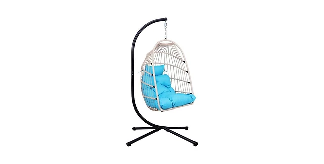 Hand-Woven Rope Hanging Chair with Thick Cushion and Folding Metal Frame