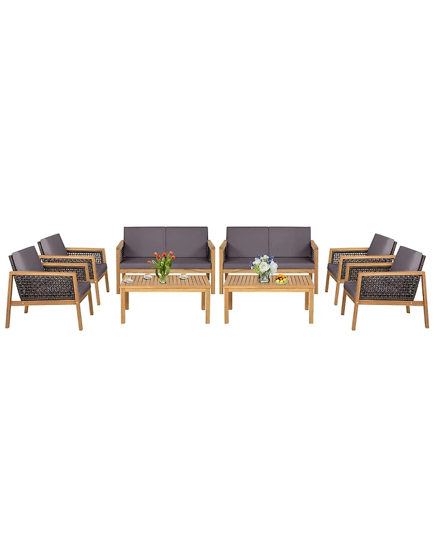 4PCS Patio Rattan Wicker Furniture Set Brown Loveseat Sofa