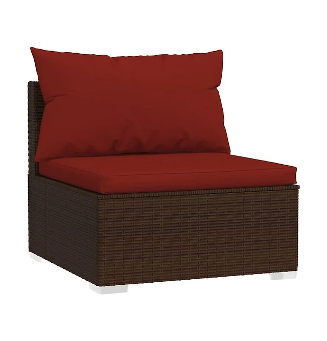 vidaXL Patio Middle Sofa with Cushions Brown Poly Rattan