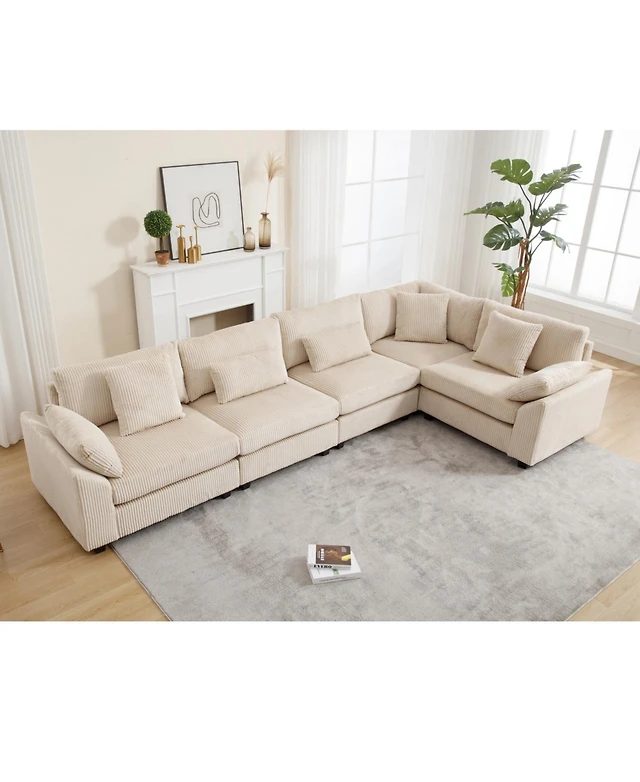 Streamdale Oversized Corduroy Corner Sofa with Storage and Ports