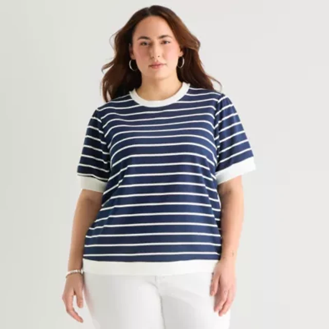 Arizona Womens Juniors Crew Neck Short Sleeve Peasant Top