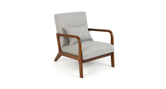Slickblue Mid-Century Modern Linen Upholstered Accent Chair with Wooden Legs