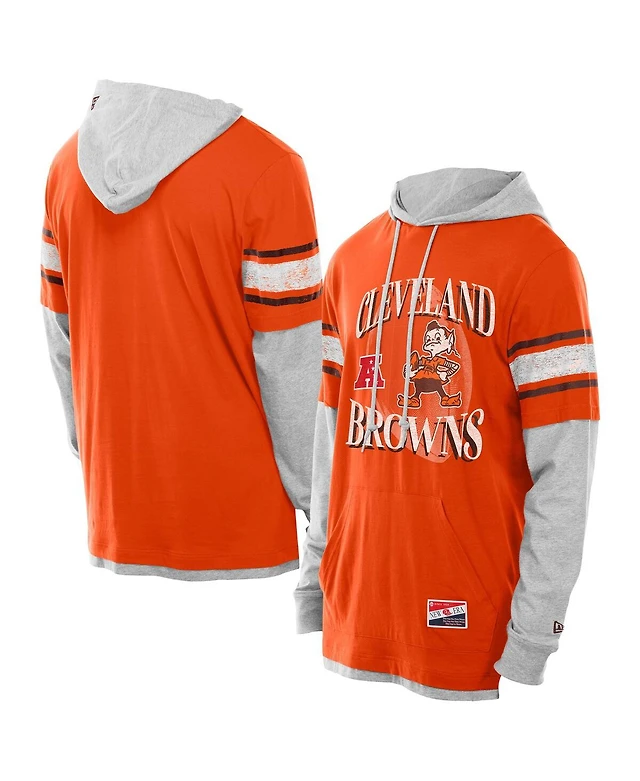 New Era Men's Orange Cleveland Browns Twofer Layered Long Sleeve Hoodie T-Shirt