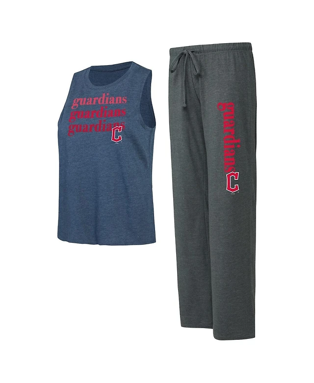Women's Concepts Sport Charcoal, Navy Cleveland Guardians Meter Muscle Tank and Pants Sleep Set