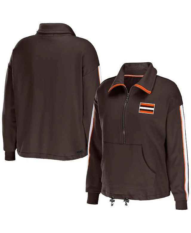 Women's Wear by Erin Andrews Brown Cleveland Browns Logo Stripe Half-Zip Top