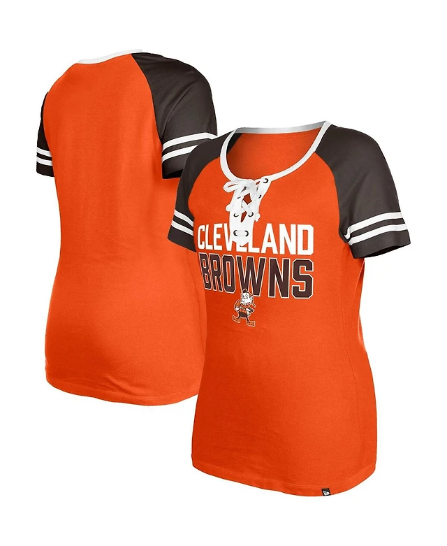 Women's New Era Brown Cleveland Browns Lace-Up Notch Neck Long Sleeve T-shirt