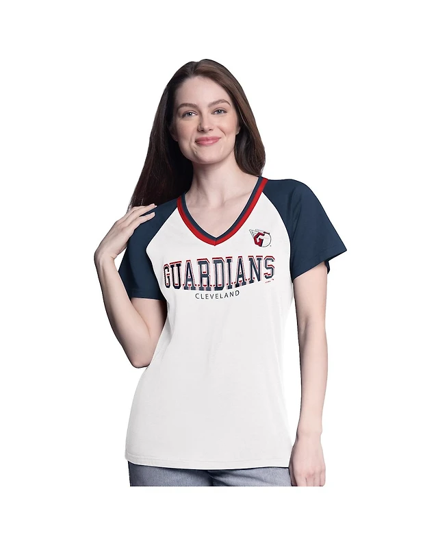 G-iii 4Her by Carl Banks Women's White/Navy Cleveland Guardians Ball Park Raglan V-Neck T-Shirt