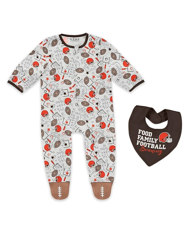 Wear by Erin Andrews Baby Boys and Girls 2-Piece Cleveland Browns Allover Print Full-Zip Sleeper Bib Set