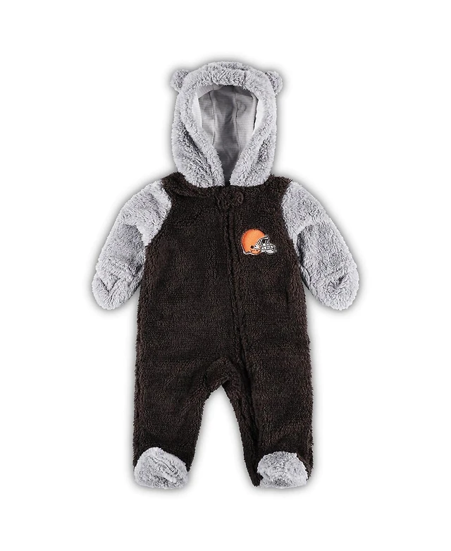 Newborn and Infant Boys and Girls Brown, Gray Cleveland Browns Game Nap Teddy Fleece Bunting Full-Zip Sleeper