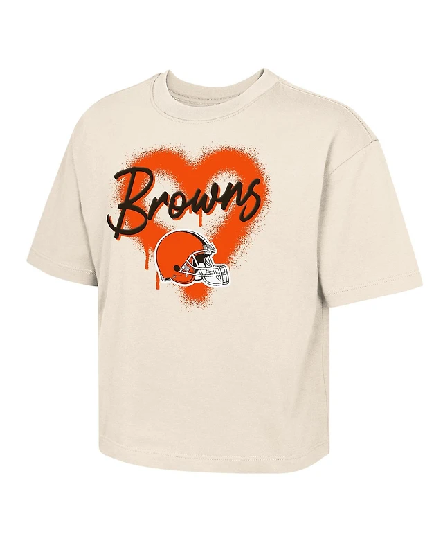 Outerstuff Big Girls Cream Cleveland Browns Spray Heart Boxy T-Shirt